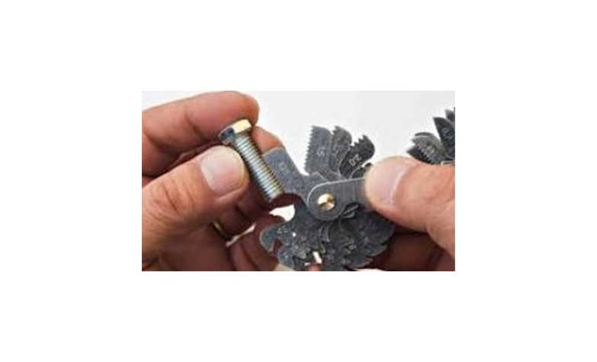 1. การวัดด้วย หวีวัดเกลียว (Pitch Gauge) เพื่อวัดระยะพิทช์ (ระยะห่างระหว่างร่องเกลียว) โดยการนำหวีมาทาบกับเกลียวจนแนบสนิท