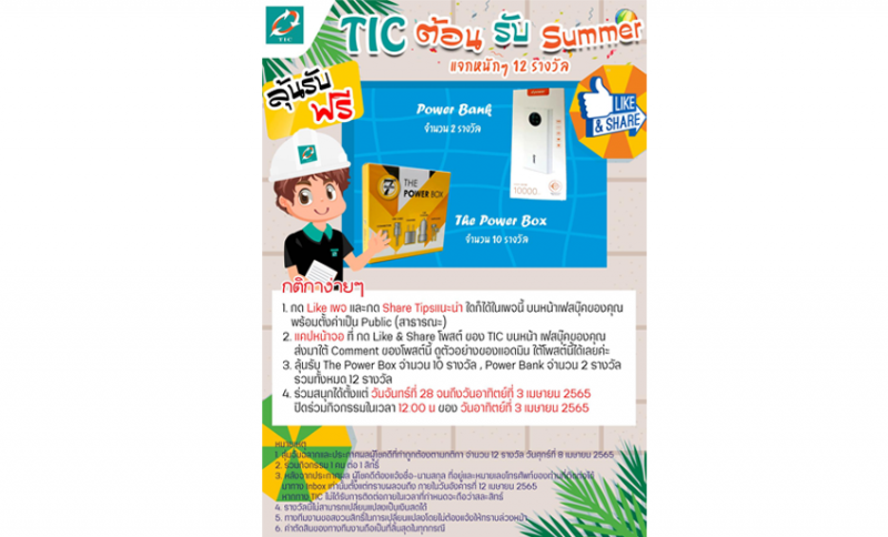 ดูรายละเอียดเพิ่มเติมได้ที่นี้...https://www.facebook.com/tic.co.th